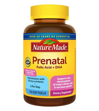 This prenatal vitamin is loaded with DHA, an essential nutrient for your baby’s healthy brain development.