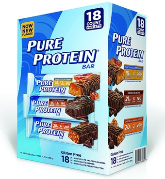 Pure Protein bars are gluten-free and have a vitamin and mineral blend to provide extra nutrients.